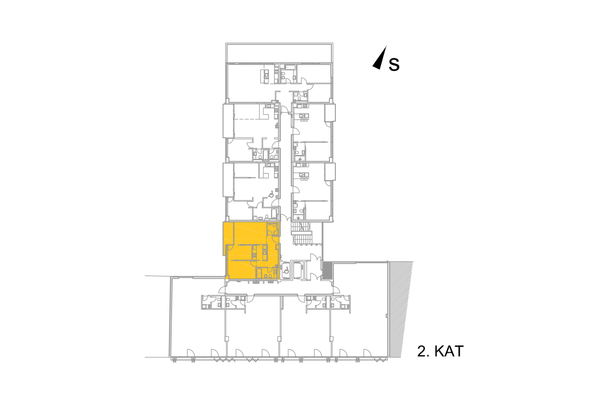 Trosobni stan površine 58,9 m2 s lođom nalazi se u na drugom katu a orijentacija stana je ZAPAD-JUG. Ugrađena vanjska aluminijsko-drvena (ariš) stolarija i električna sjenila na prozorima te protuprovalna vrata. Ugrađena unutarnja stolarija (vrata) izbjeljeni hrast. Dnevni boravak, spavaće sobe i ulaz opremljeni su hrastovim parketom rađenim za izvoz. Kuhinja, kupaonica i WC opremljeni su Marazzi keramičkim pločicama i sanitarijama Hatria.